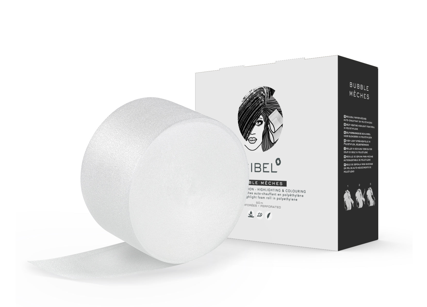 Bubble Meche is an extra-soft bleaching sheet designed for all hair coloring and highlighting techniques. Its perforated 11 cm x 30 cm strips come in a 50-meter dispenser roll, offering ease of use and precise application. The air bubble structure enhances the thermal effect while the semi-transparent material allows easy monitoring during the process.
