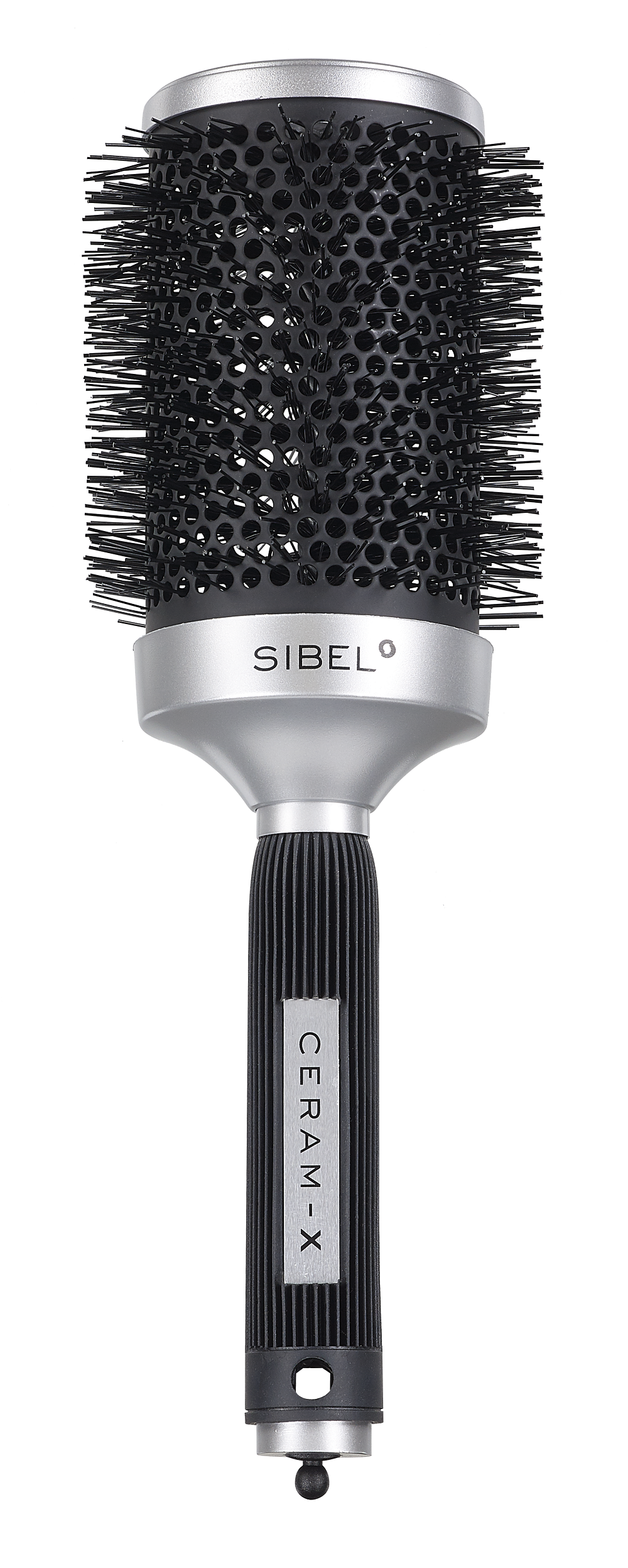 The Ceramicpro brush features a unique ceramic barrel that is half covered with boar and nylon bristles and half uncovered. The ceramic barrel without bristles actually functions as a curling iron, as it holds the heat during the brushing and transfers the heat back to the hair for a faster and more efficient styling. The combination of nylon and boar bristles hydrates the hair cuticles and adds a wonderful shine to the hair. The special grip handle has an anti-slip function and holds a sectioning pin.