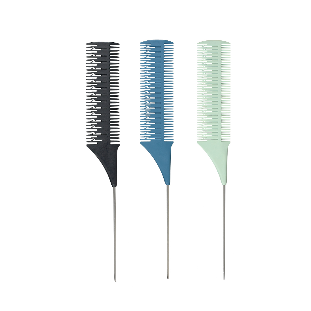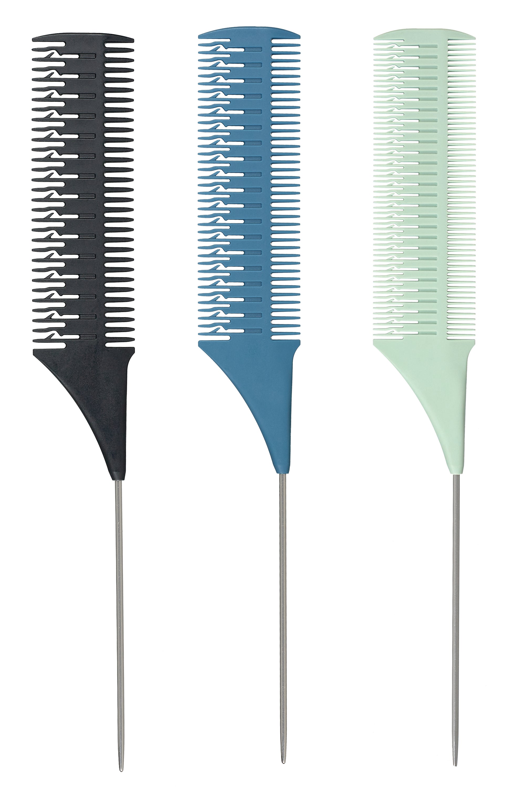 Highlight Weaver is a professional set of combs designed for precise hair weaving and highlighting. Made from antistatic, heat-resistant material, these lightweight combs are comfortable to use and feature serrated teeth with a sectioning pin tail for accurate sectioning during bleaching and coloring.